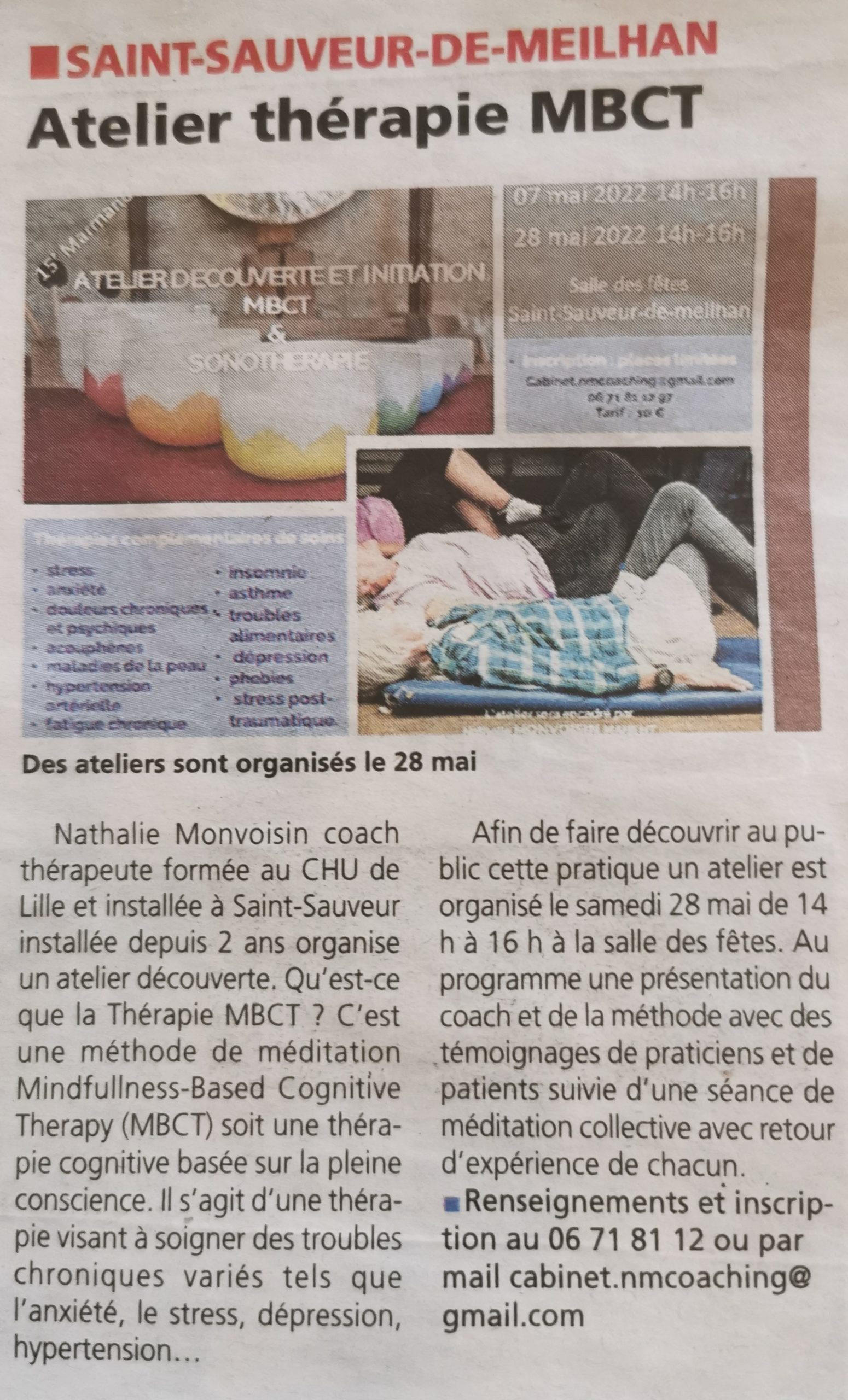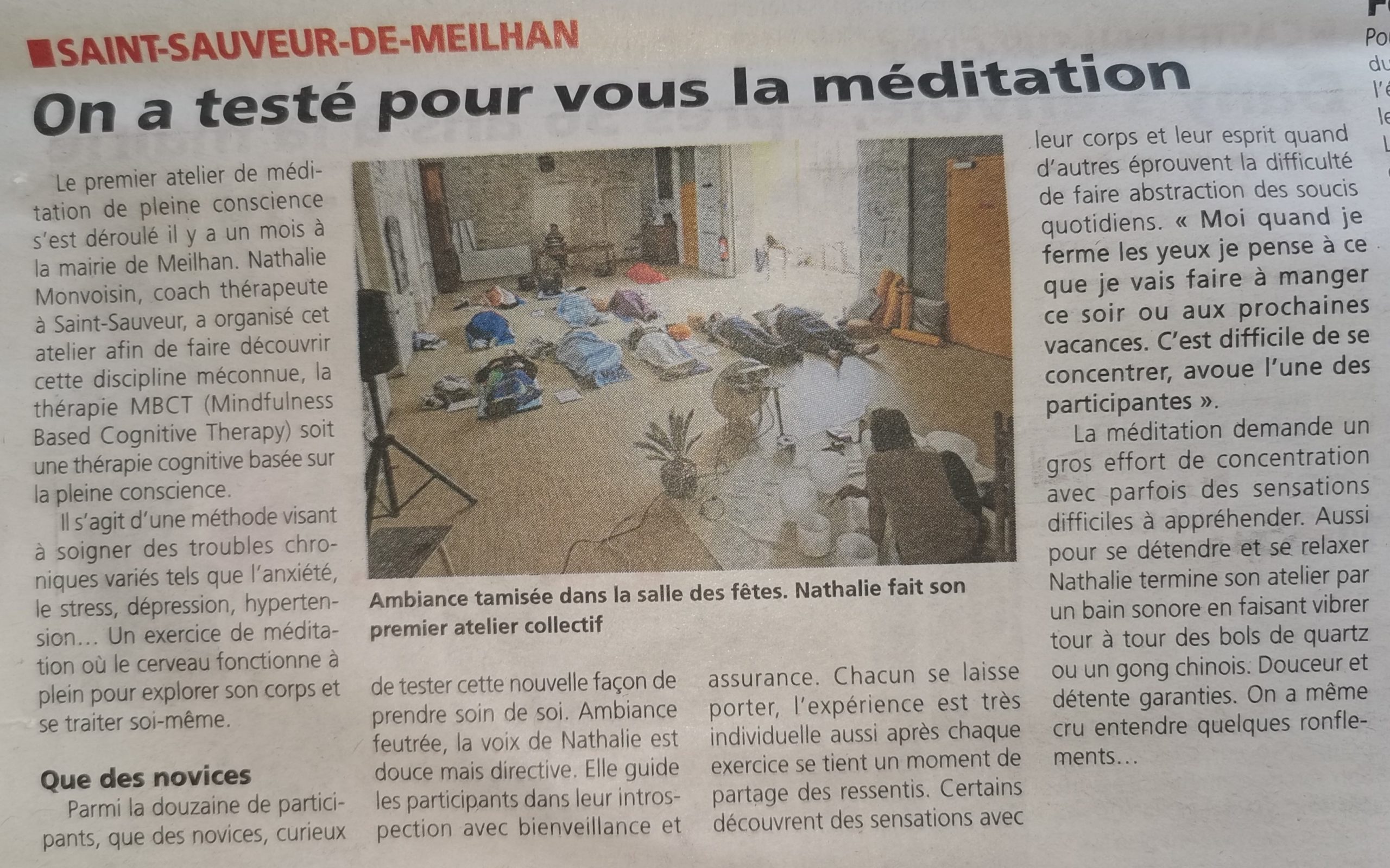 J'ai suivi le protocole MBCT qui m'a aidé énormément à calmer mes angoisses et m'a aidé dans mes démarches professionnelles. Je remercie beaucoup Nathalie pour sa disponibilité et son écoute.
